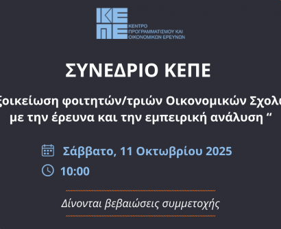 Συνέδρια-Ημερίδες Συνέδριο του ΚΕΠΕ για την εξοικείωση των φοιτητών οικονομικών σχολών με την έρευνα και την εμπειρική ανάλυση 25 September 2025